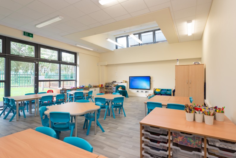 Rednal Hill Infants School :- Five additional classrooms have been created as part of this project to provide a new nursery block for the school. The refurbishment of existing primary school classrooms and the relocation of the School playground were also undertaken