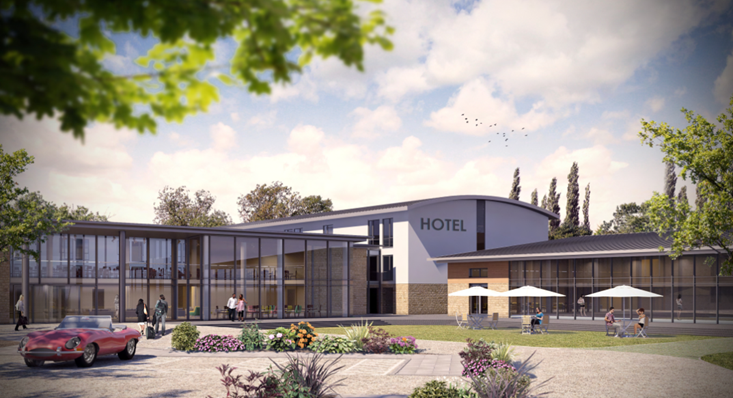This concept design for a new spa hotel is in parkland in the grounds of the Heritage Motor Centre at Gaydon, Warwickshire.