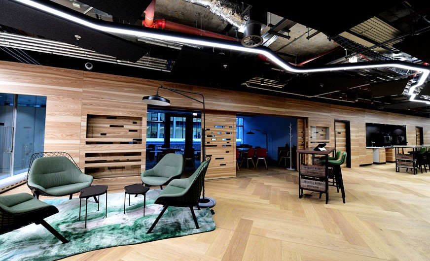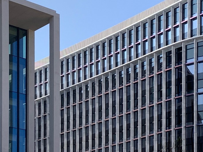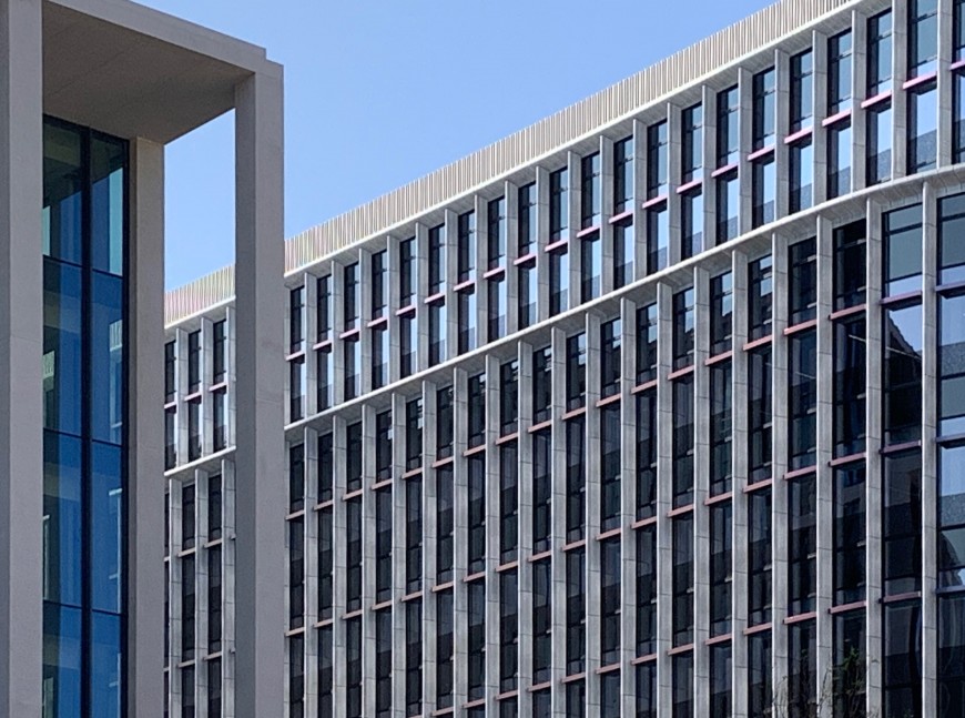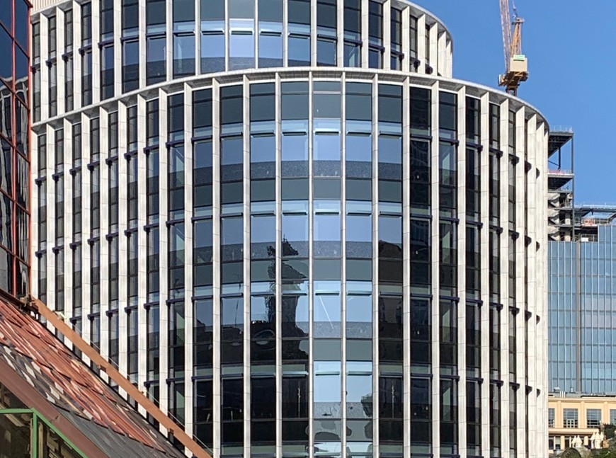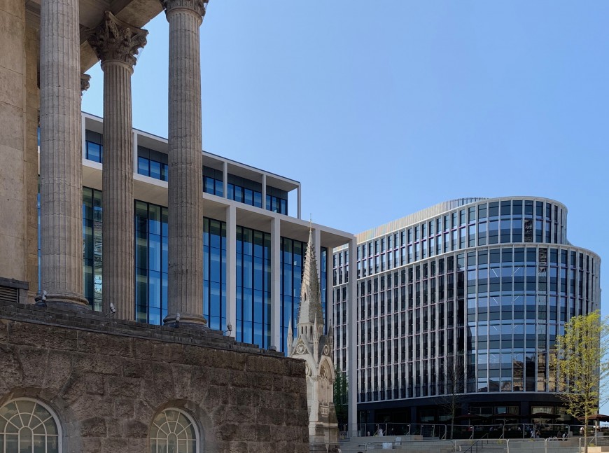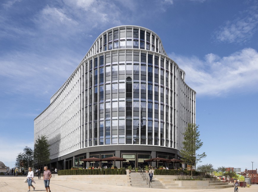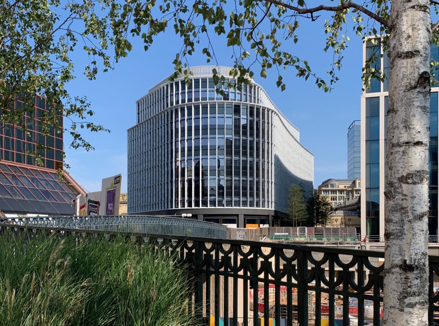 The first building on the site is this 172,000 sq ft, seven storey office building designed by Eric Parry Architects. On the ground floor there is 22,000 sq ft of retail and leisure opportunities. The whole of the commercial space above is let to international professional services firm PwC. Weedon Architects were responsible for delivering this fit-out following the a concept design by BDP
