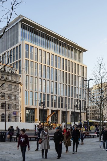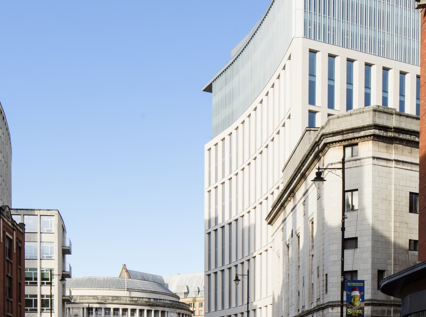 St Peter’s Square is historically significant and this new building sits opposite the Grade 1 listed Town Hall and the Grade II* listed central library.